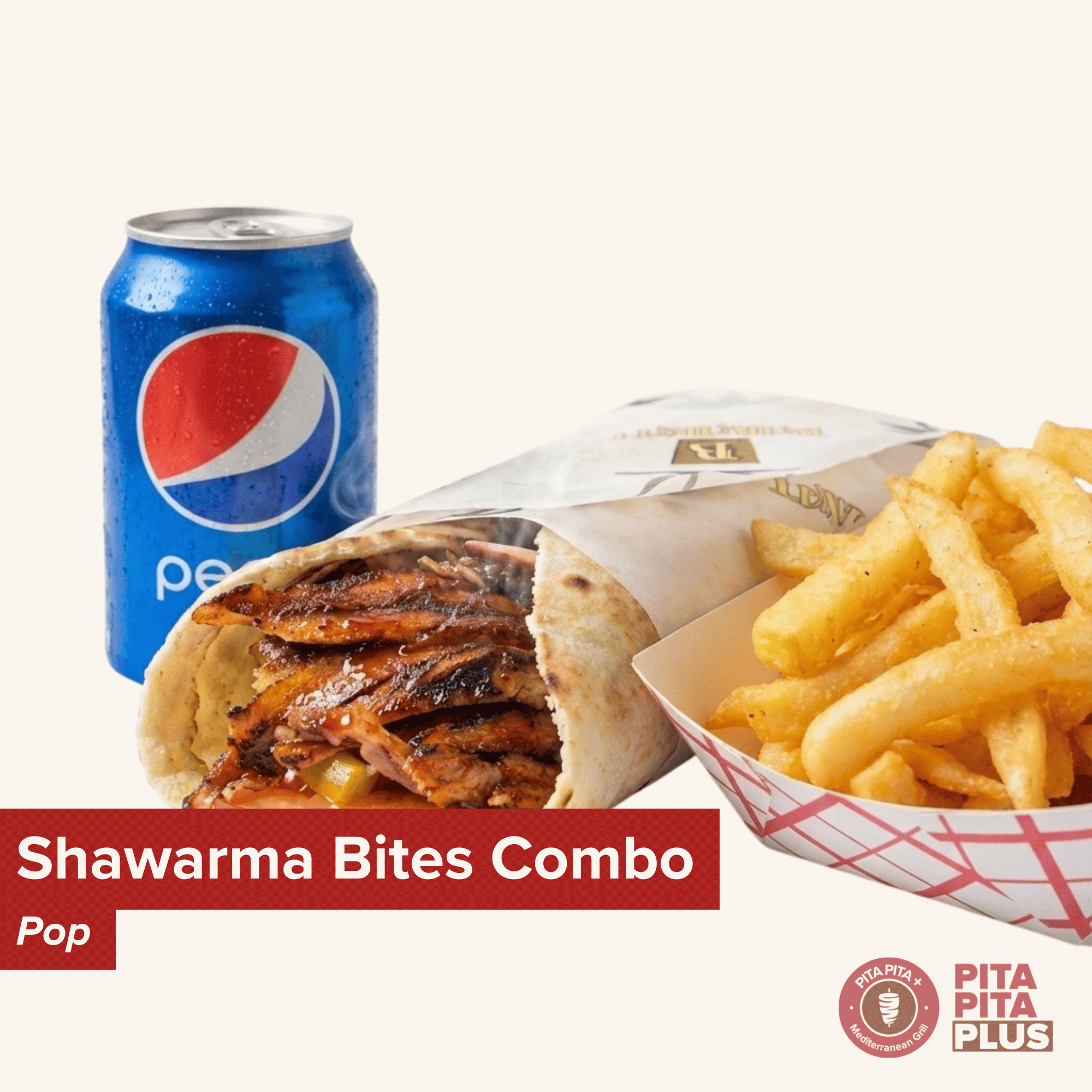 Our crispy shawarma bites with your choice of side and a cold pop. Quick, crunchy, craveable.